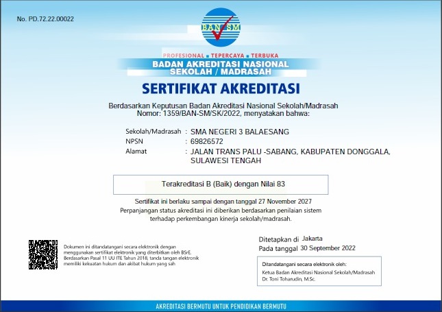 Terakreditasi B (BAIK) Dengan Nilai 83